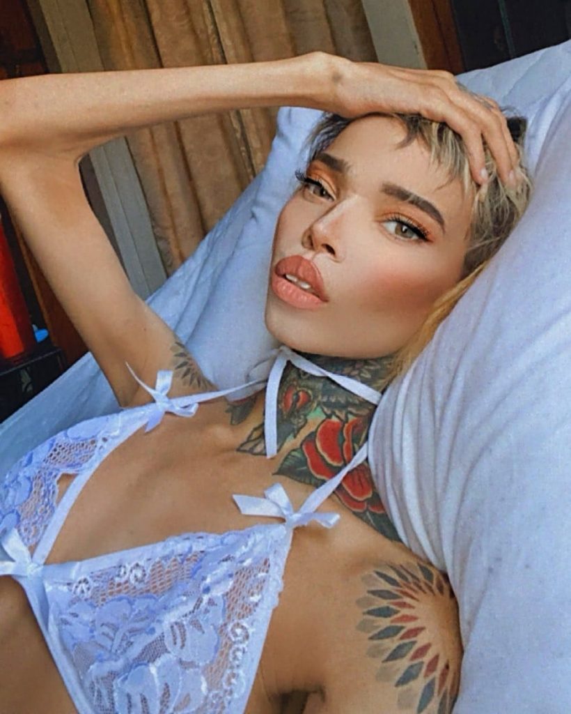 Внешность Gena Tew выделяется необычностью: у нее много татуировок и пирсинг, стройная фигура и выраженные черты лица. В интернете доступны фотографии девушки, включая откровенные снимки, что вызывает большой интерес у аудитории. Некоторым она известна благодаря отношениям с известными исполнителями.